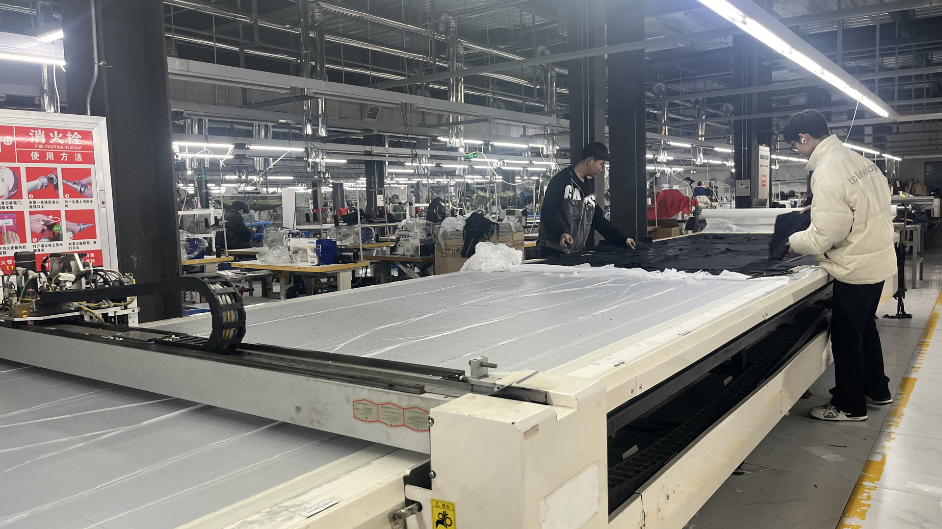 開放式工廠 行政辦公樓 形象展示店 展廳一角 樣衣展示 自動化裁剪 車間精細生產 流水線成品庫